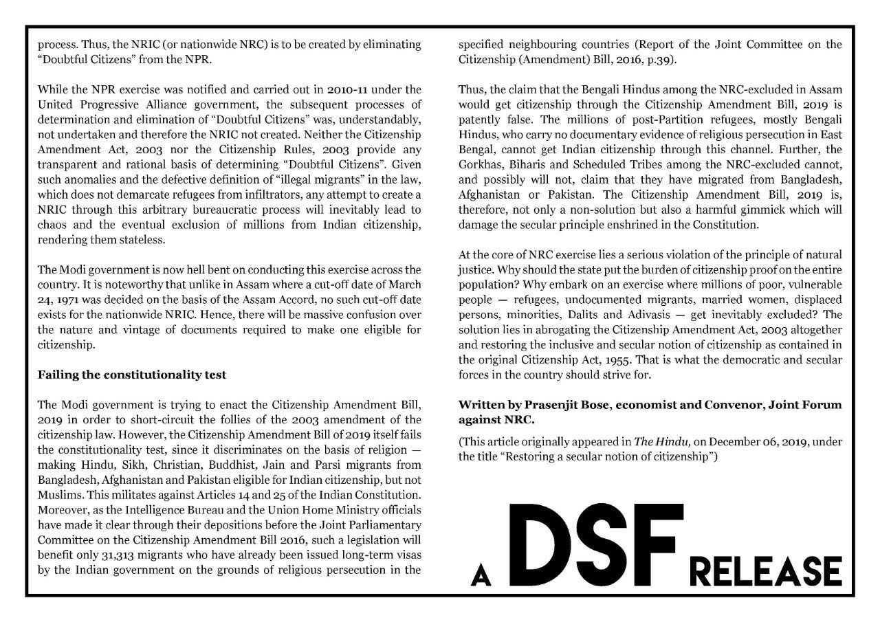 Archived from: https://dsfjnu.wordpress.com/2019/12/15/reject-the-communally-motivated-citizenship-amendment-bill-and-national-register-of-citizenship/